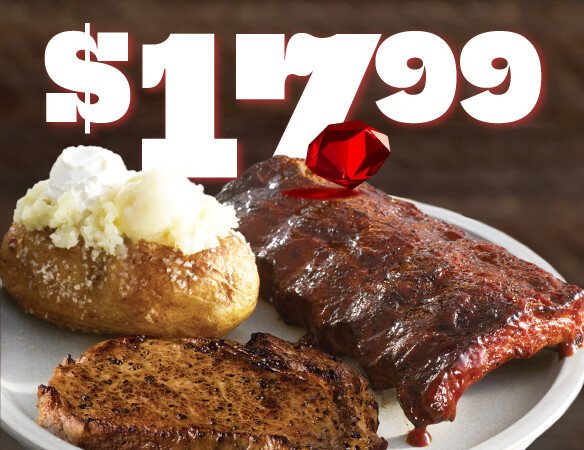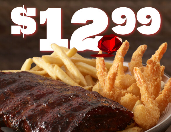 Feast on our 6 oz Rib Eye and Half-Rack of Baby-Back Ribs with classic BBQ.