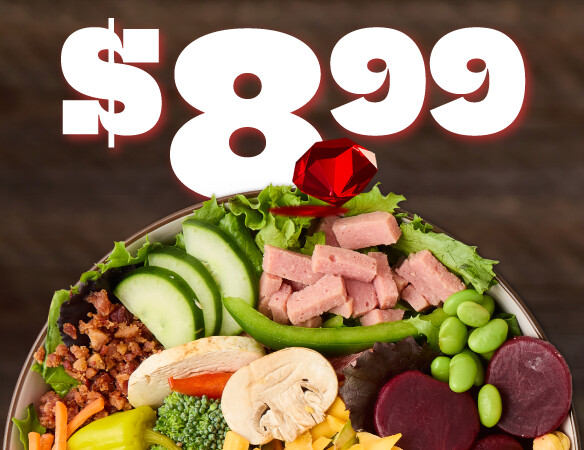 Fresh, farm-grown goodness! Create your perfect salad with fresh garden greens, crisp vegetables, premium cheeses, and toppings. And it’s endless so you can make as many salads as you want!